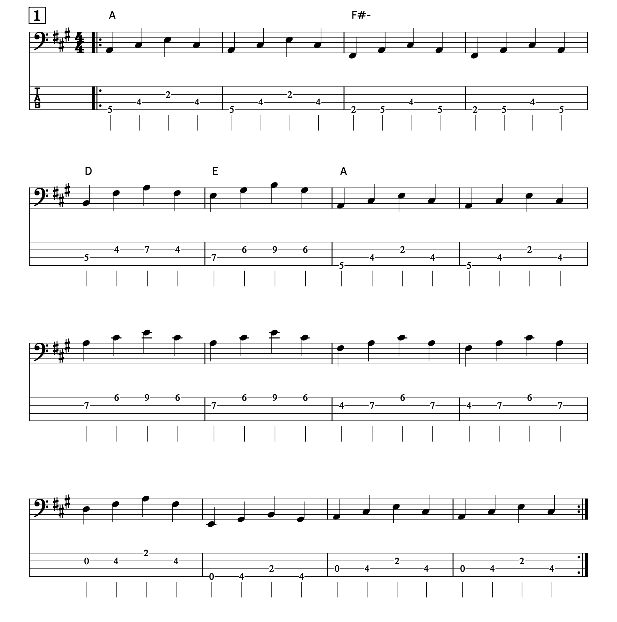 A-Dur, F#- Moll, D-Dur und E-Dur